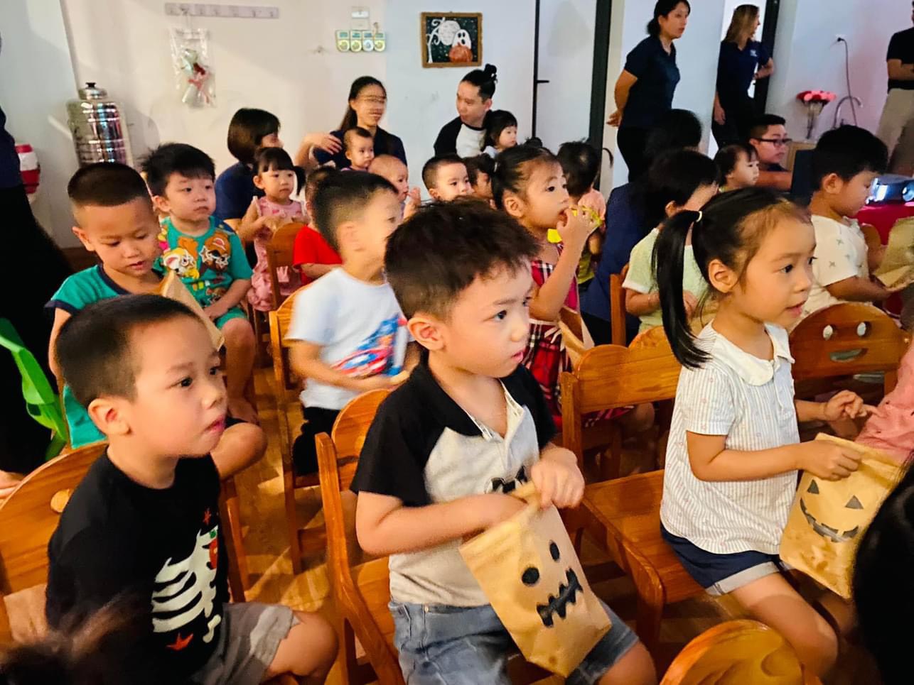 👻 Những tiếng vỗ tay, những tiếng cười khúc khích, những ánh mắt sáng ngời, chăm chú xem diễn biến của bộ phim Halloween tại rạp chiếu phim huyền bí đã được thầy cô ghi lại trong những tấm hình kỉ niệm. Các bố mẹ hãy cùng ngắm các thiên thần nhỏ tại rạp chiếu phim Halloween của InterKids nhé! 💙