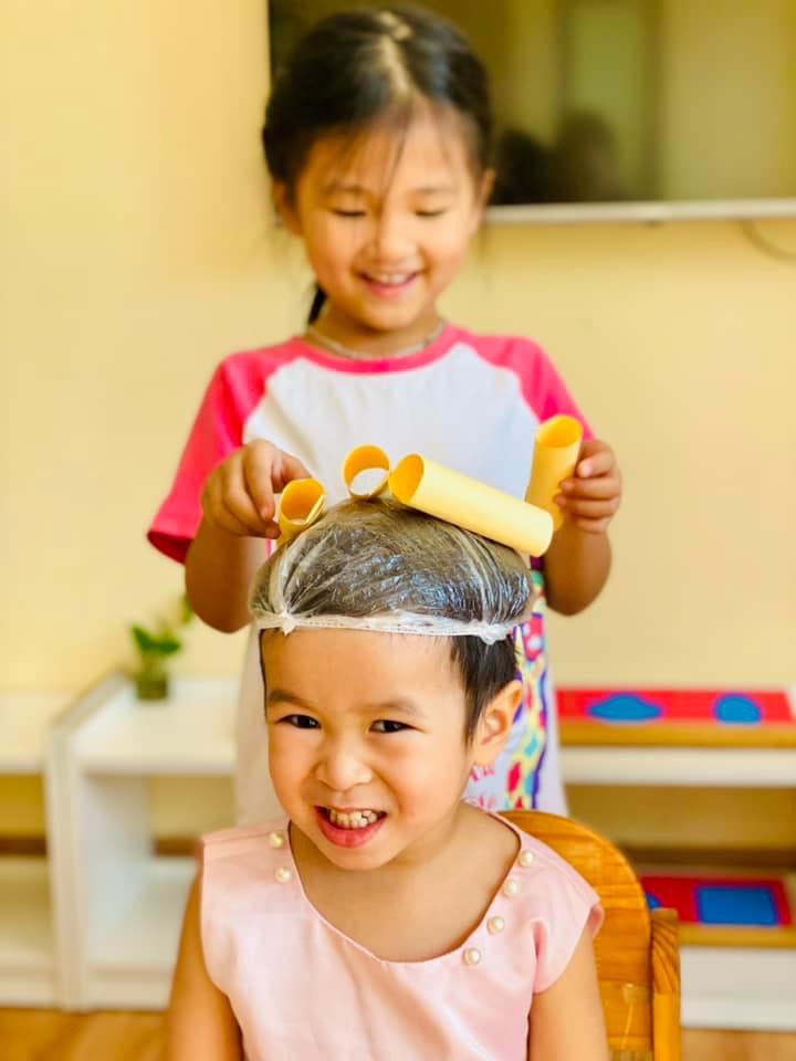 😹 Tiếng kéo lách cách tạo ra bộ tóc xoăn, thẳng, sấy tóc... theo cách của các con. Đôi bàn tay bé xíu cầm kéo có đôi chút còn vụng về nhưng không thể giấu đi sự vui tươi, thích thú khi chính tay các con tạo ra bộ tóc xinh xắn và ngộ nghĩnh. 👶