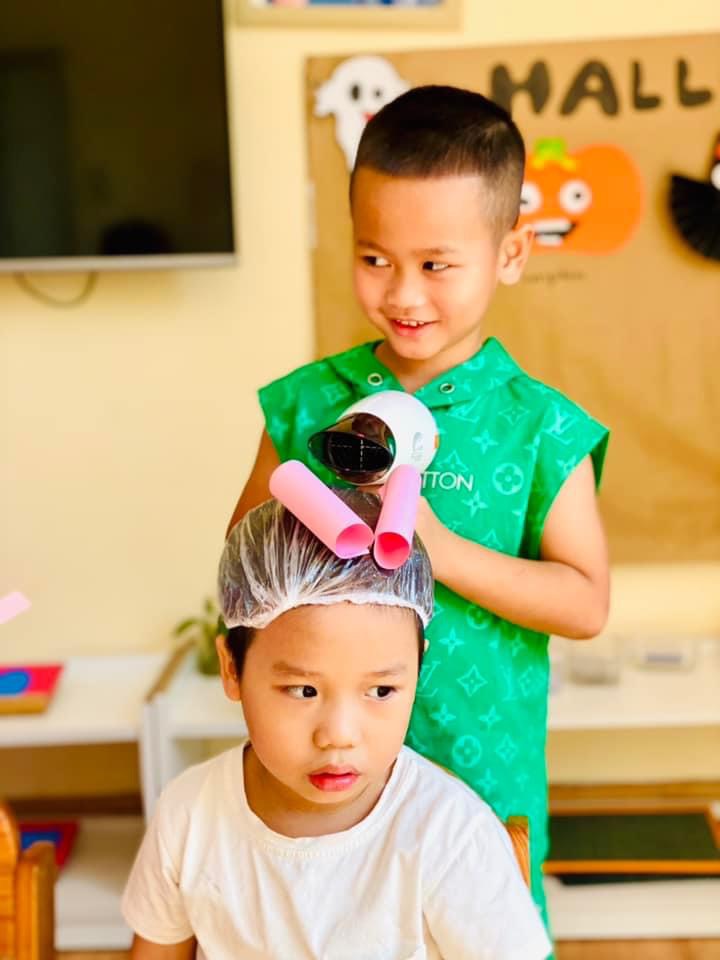 🥰 Mời ba mẹ đến với “ Tiệm làm tóc hạnh phúc”. Đây là tiệm do chính các thợ cắt tóc nhí của InterKids làm đấy ạ. Tiệm nhận cắt tóc, uốn tóc xoăn, hấp tóc… ba mẹ ơi! 🤩