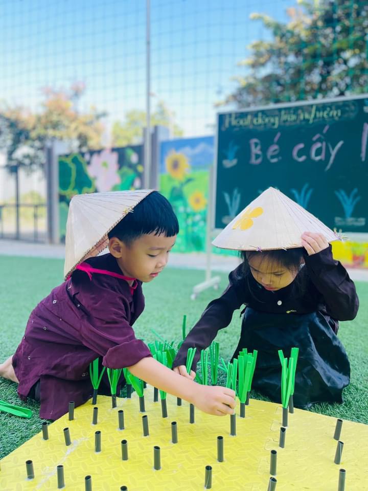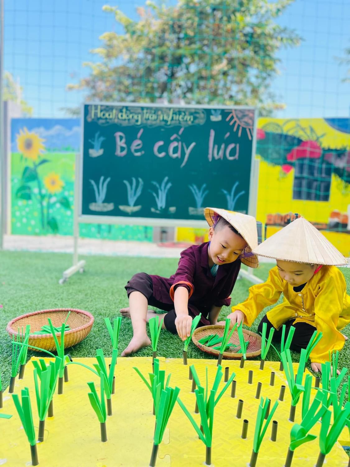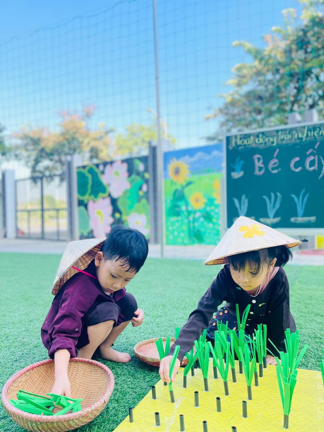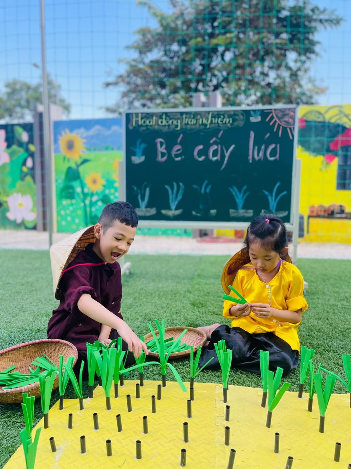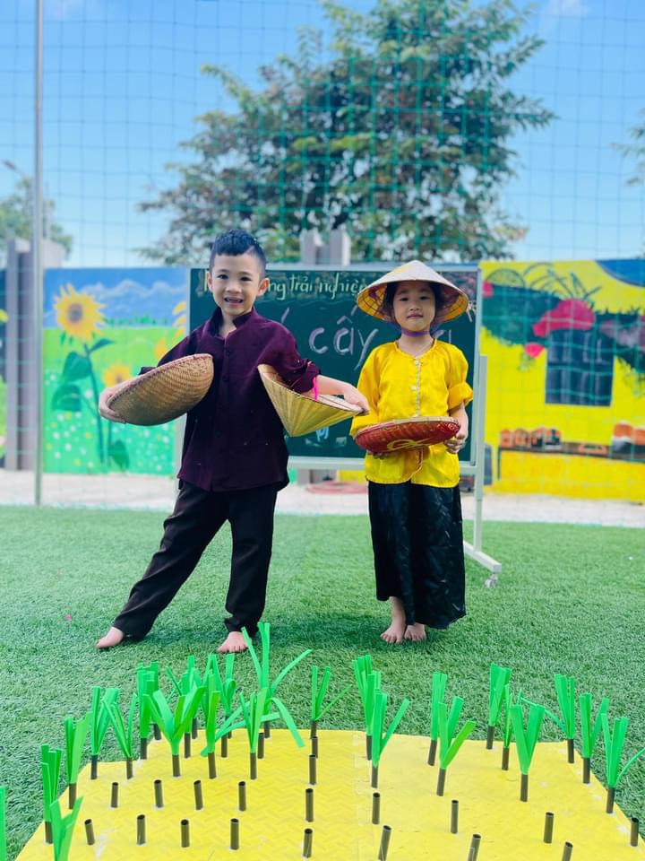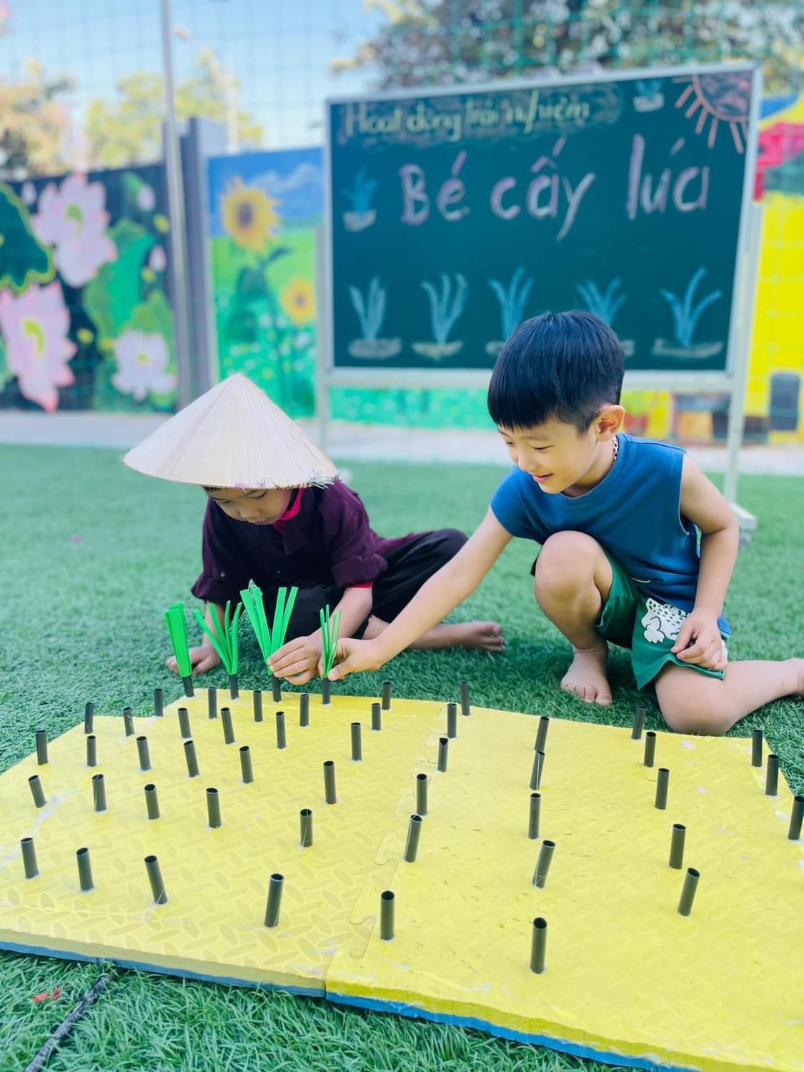 🍶 Đến với hoạt động trải nghiệm nghề nông, các bạn nhỏ lớp Sunflower đã hoá thân thành các cô bác nông dân tí hon đi cấy lúa và phơi lúa đấy ba mẹ ạ. 🥔