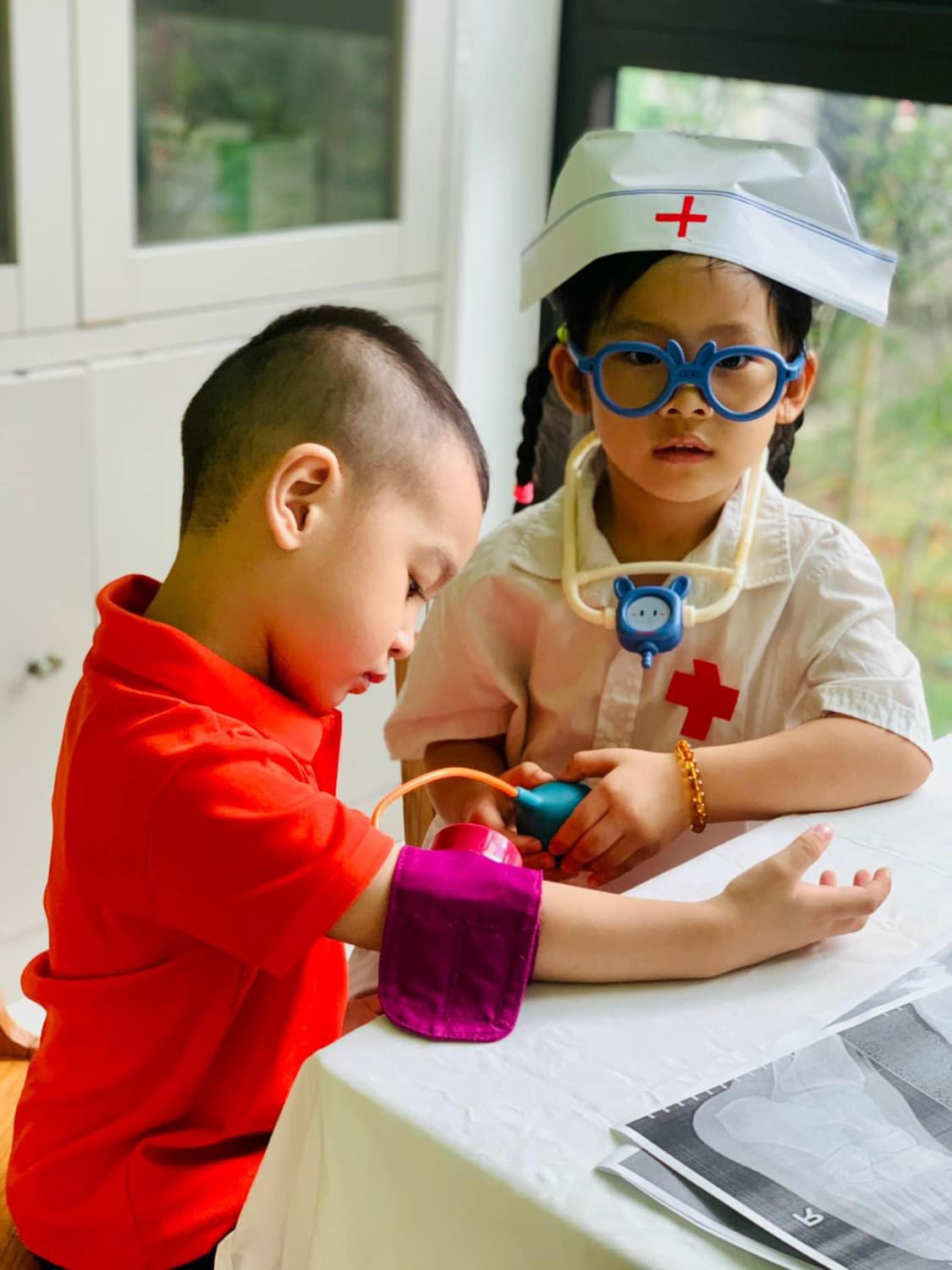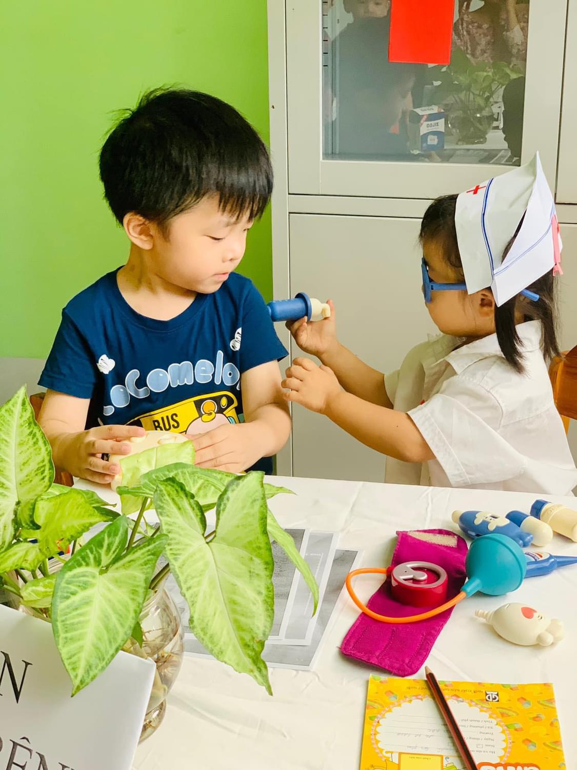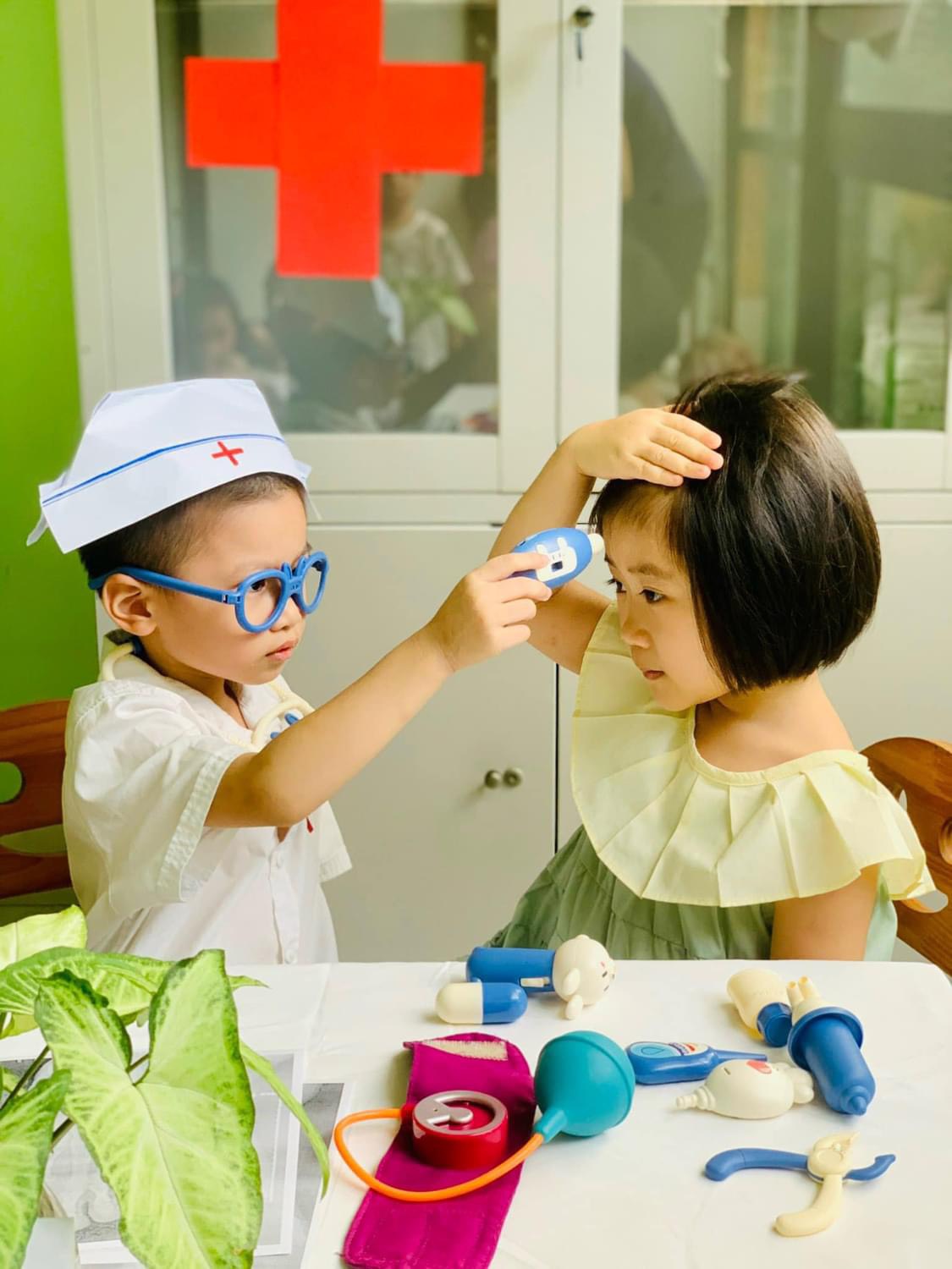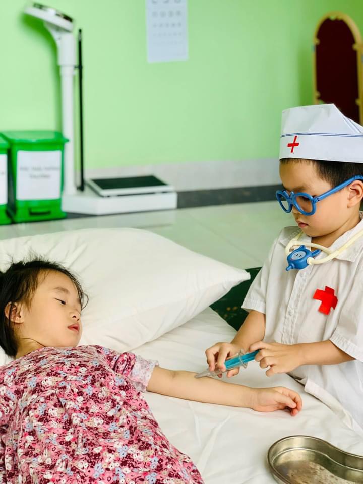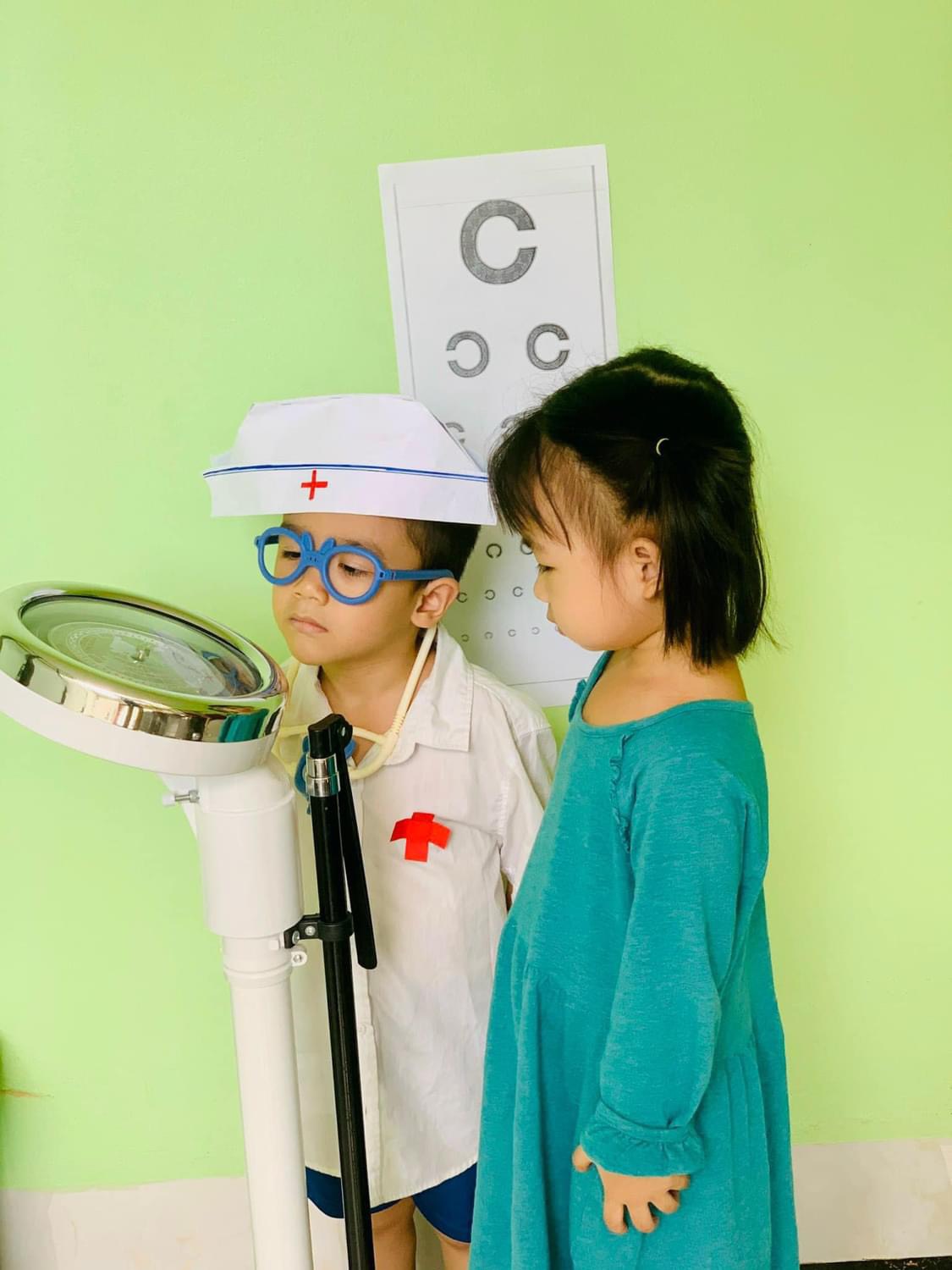 🩺 Cùng nhau tìm hiểu về nghề nghiệp bác sĩ, các bạn nhỏ lớp Violet tham gia giờ học kỹ năng sống “Bé tập làm sĩ”. Thông qua giờ học, các con hiểu thêm về hình ảnh, công việc của nghề bác sĩ và phản ánh lại những việc làm hàng ngày của bác sĩ khi khám bệnh cho bệnh nhân. 🥼