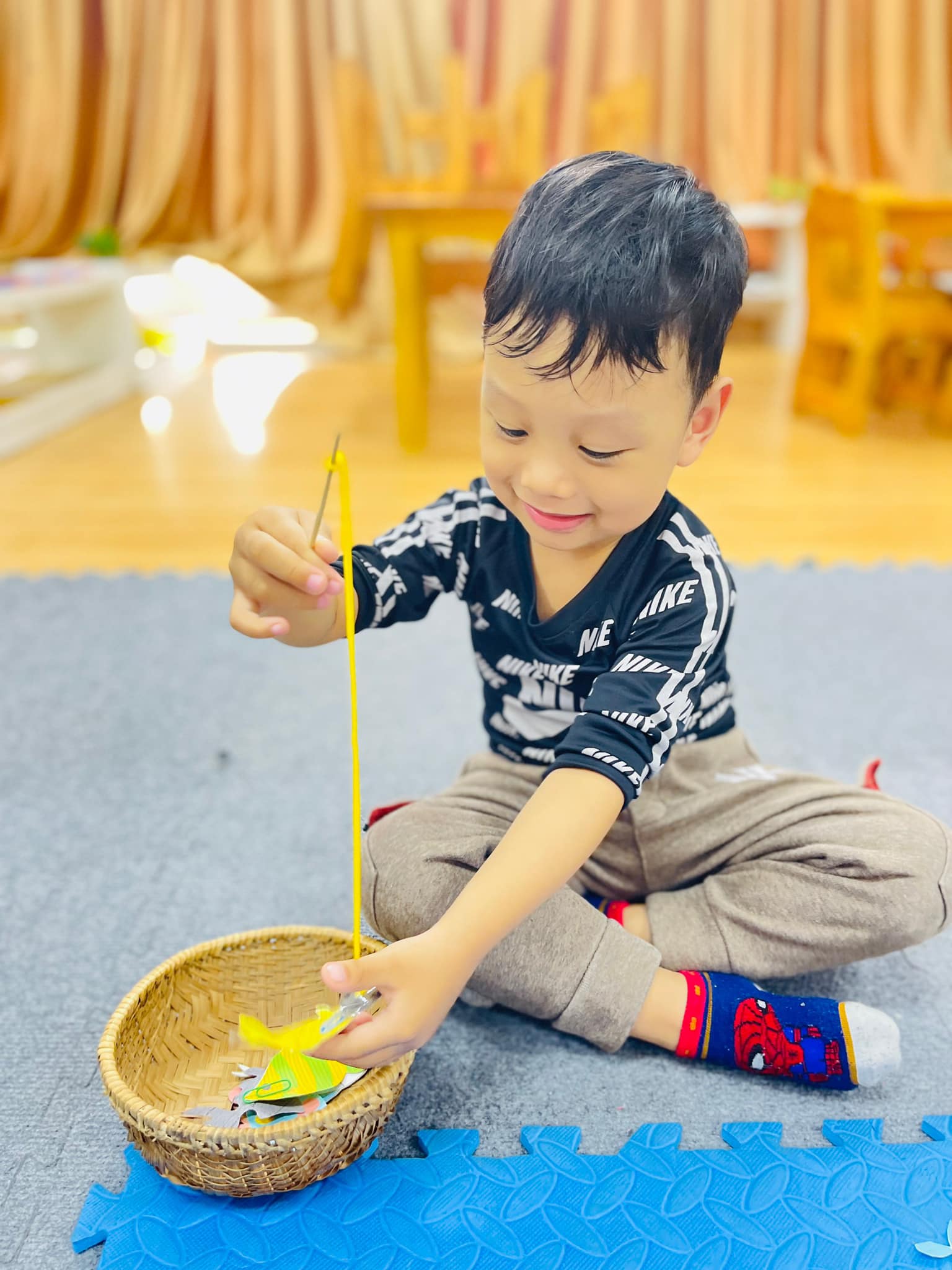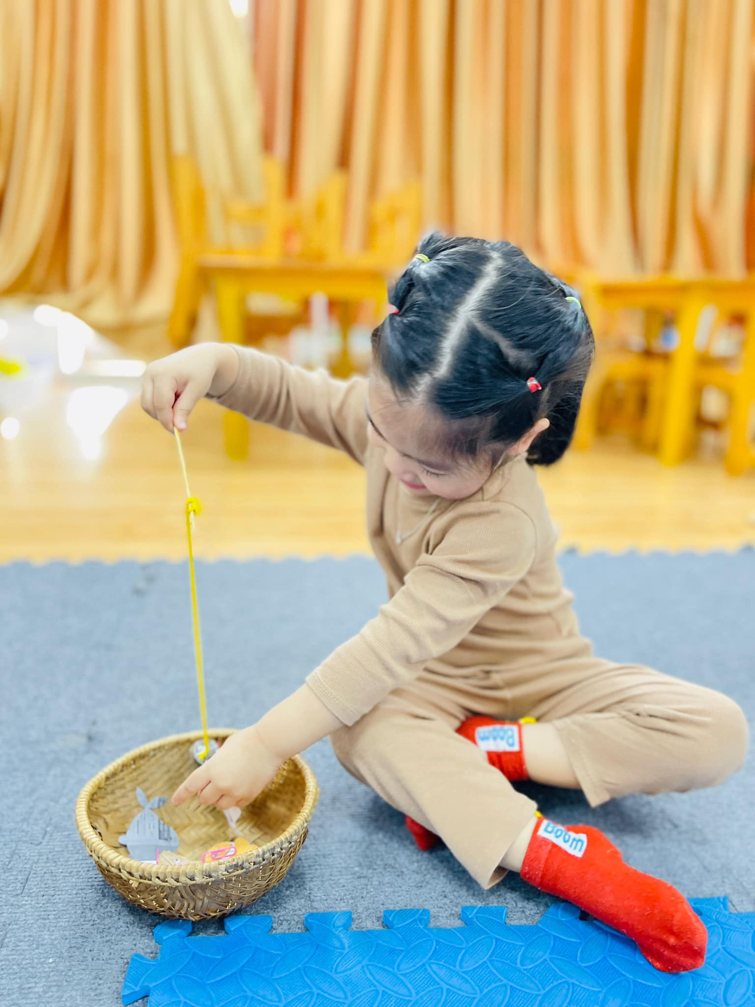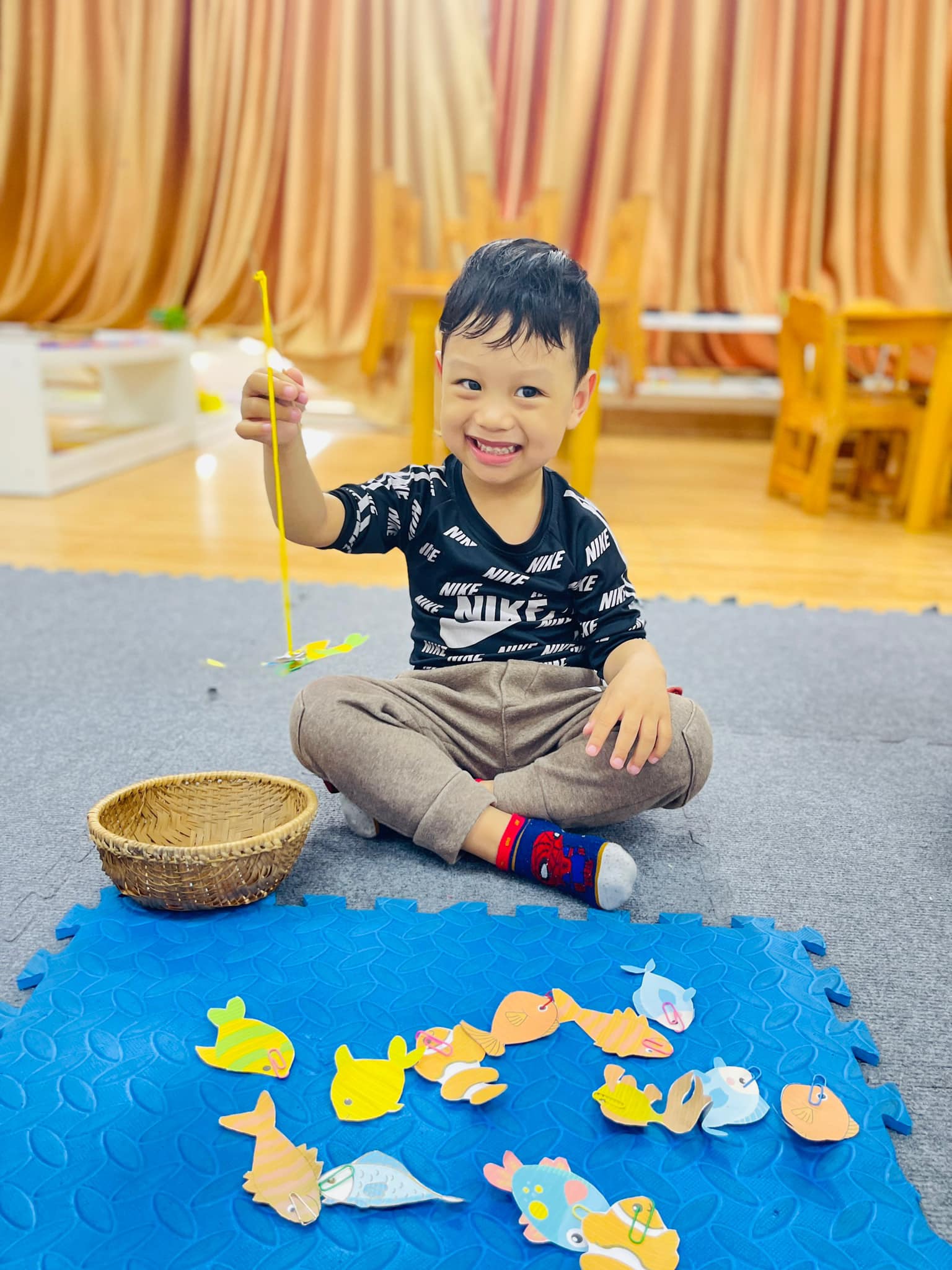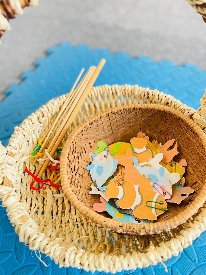 Chỉ với những nguyên liệu gần gũi: những chú cá đã được gắn ghim, que gỗ, dây, nam châm. Các bé đã có một trò chơi thú vị ![]()