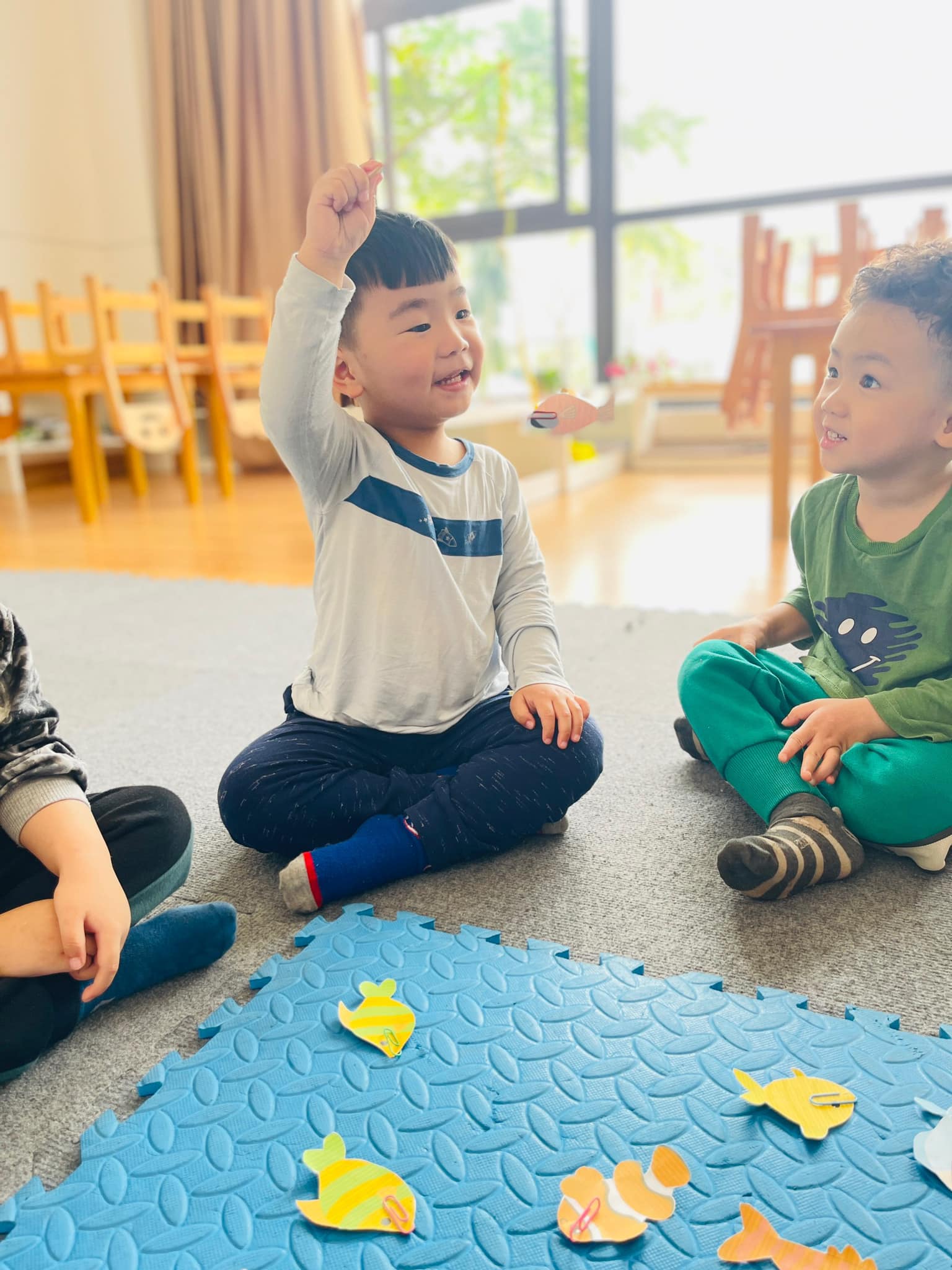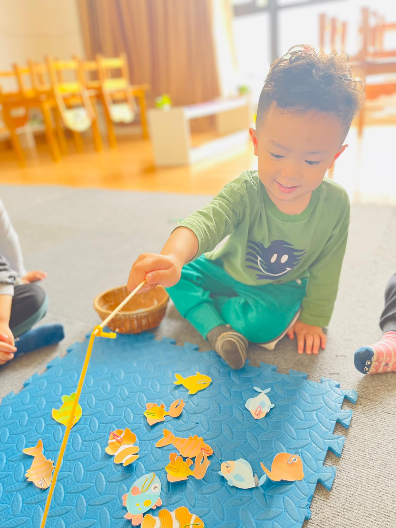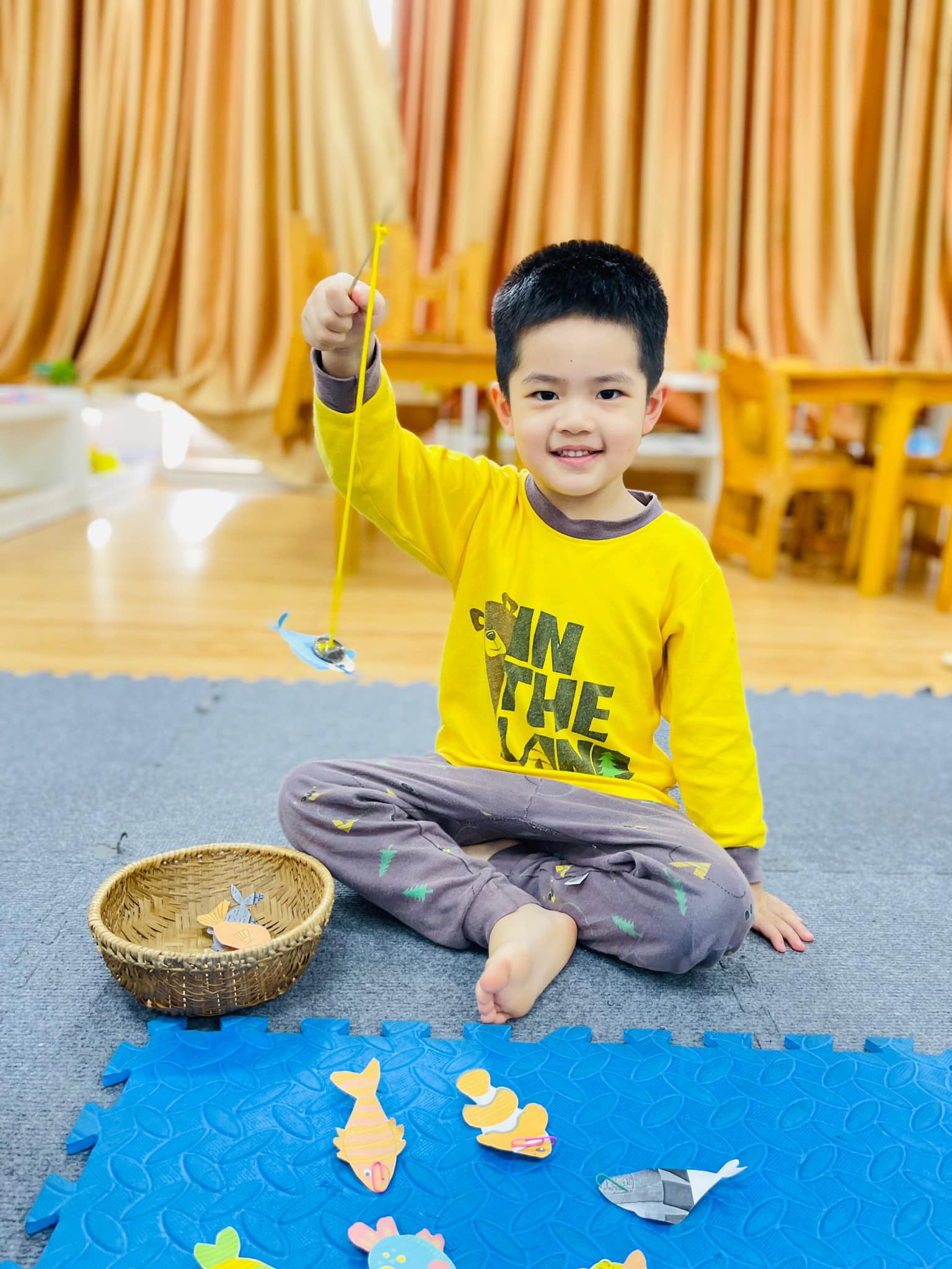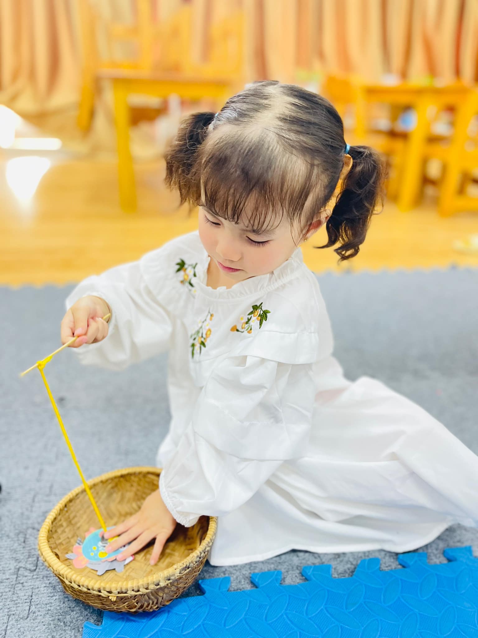 Chỉ với những nguyên liệu gần gũi: những chú cá đã được gắn ghim, que gỗ, dây, nam châm. Các bé đã có một trò chơi thú vị ![]()