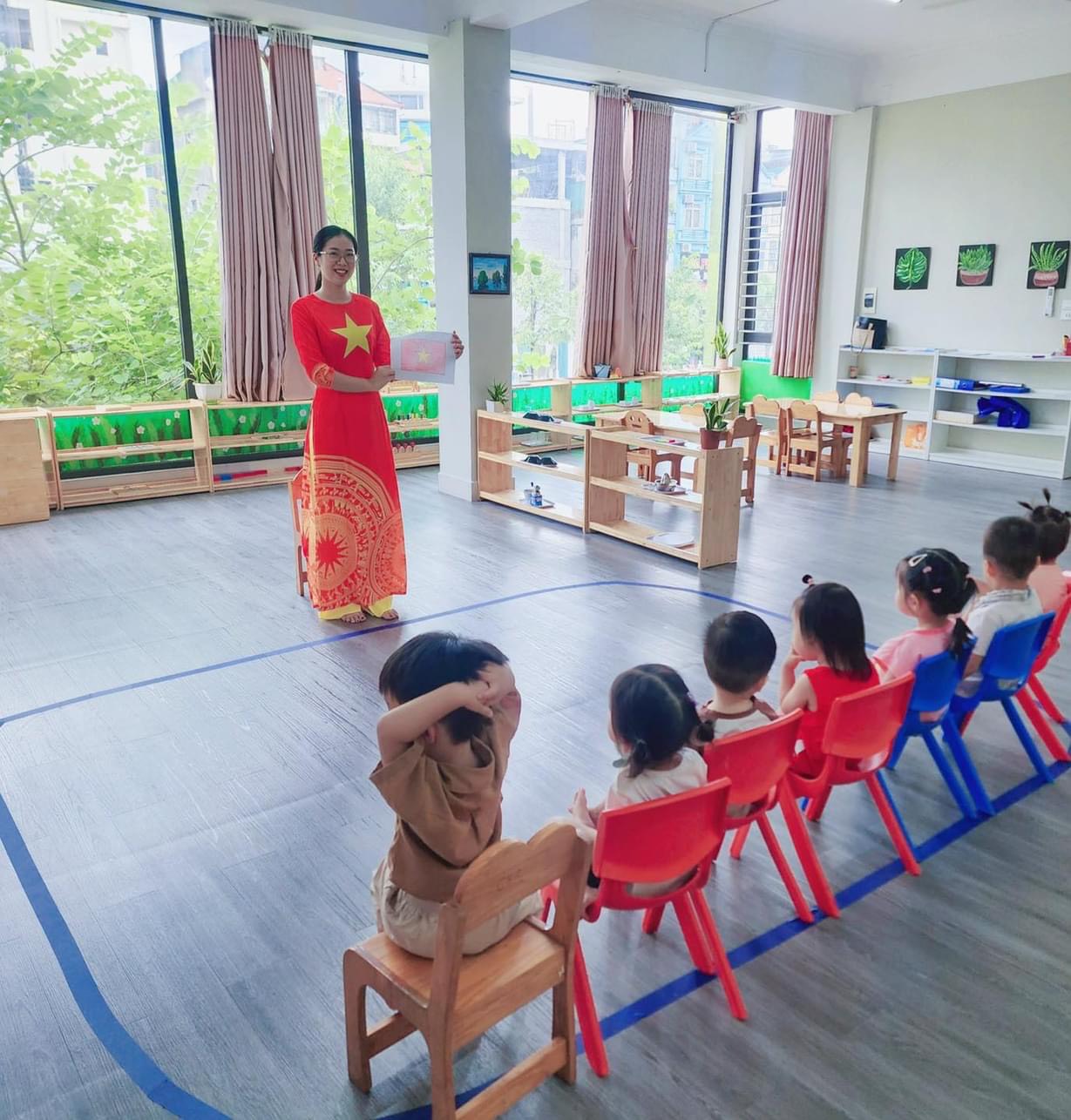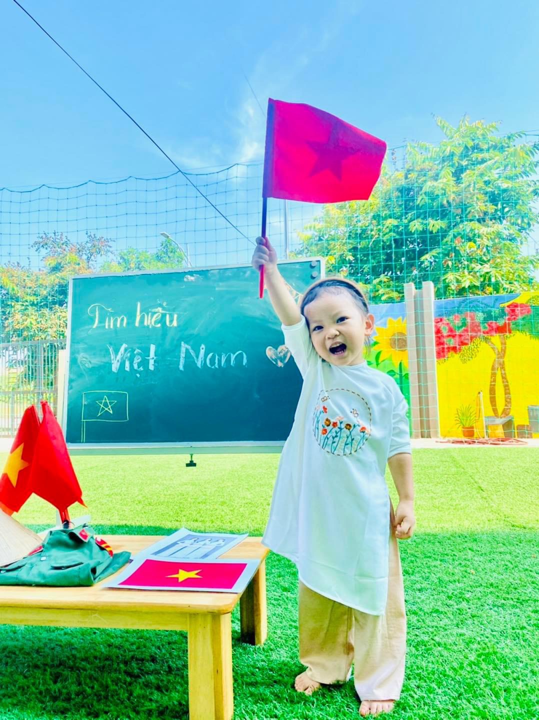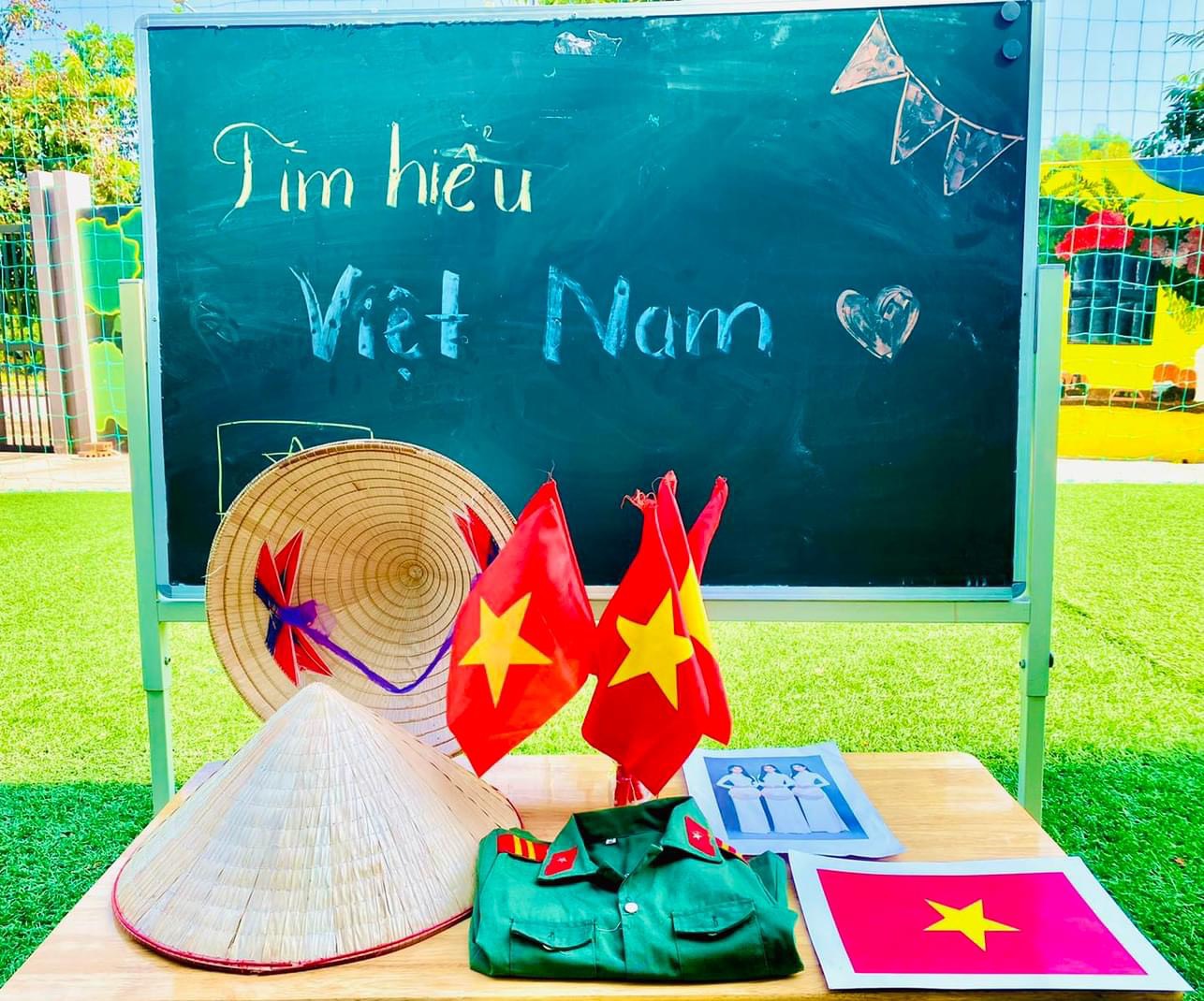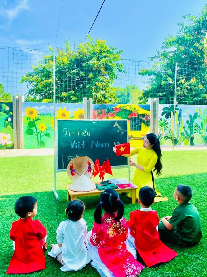 🗺 Các con được tìm hiểu về địa lý, trang phục, làm quen với khái niệm đất liền và biển đảo. Được nghe những câu thơ, bài hát hào hùng của dân tộc. Được cảm nhận, tri giác tà áo dài, lá cờ và những chiếc nón lá xinh đẹp. 🎖