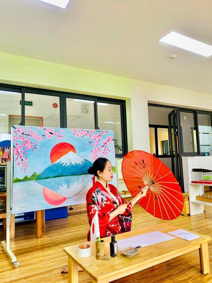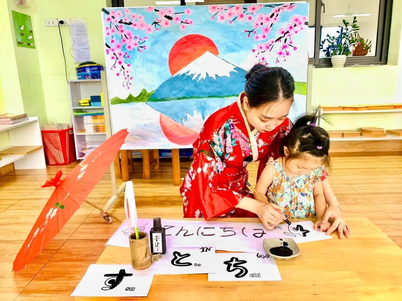🈵 Hôm nay các bạn nhỏ lớp Violet được tìm hiểu những nét đặc trưng về nền văn hoá của đất nước xứ sở hoa anh đào, được tự tay thực hiện các tác phẩm nghệ thuật… 🏯 Bắt đầu giờ học là những câu chào “ Konichiwa”, khám phá bộ trang phục Kimono là biểu tượng của đất nước Nhật Bản. 🍣 Không khí lớp học rất sôi nổi vì các con đã biết thêm được rất nhiều nét truyền thống, văn hoá của người Nhật Bản. 🇯🇵