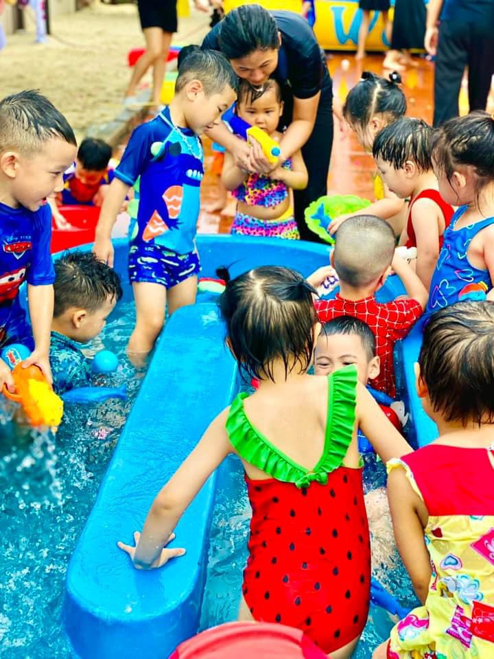 🏄♀️ “ Water Festival 2023” đã diễn ra vô cùng sôi động. Các bạn nhỏ mặc trong mình những bộ đồ bơi sặc sỡ hoà mình vào dòng nước mát lạnh. 🚣♀️ Trong không khí ngập tràn với nước, các con được tham gia các trò chơi trượt băng xà phòng, bịt mắt đập bóng nước, cảm thụ giác quan, truy tìm kho báu, đại chiến bóng nước… 🍸