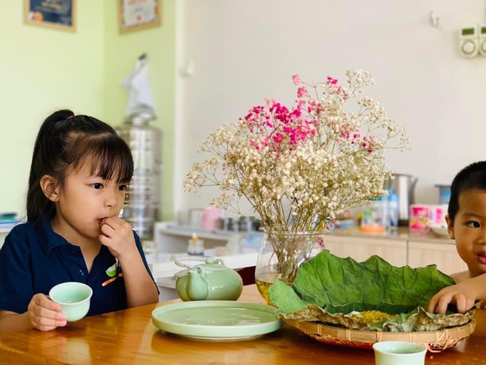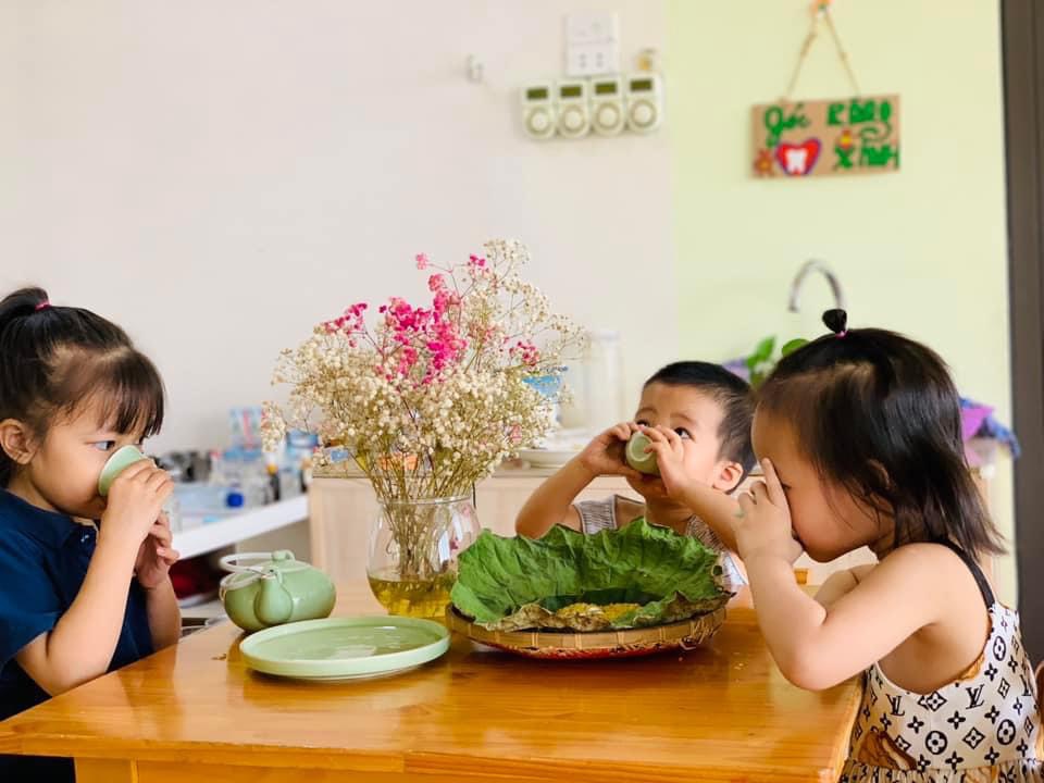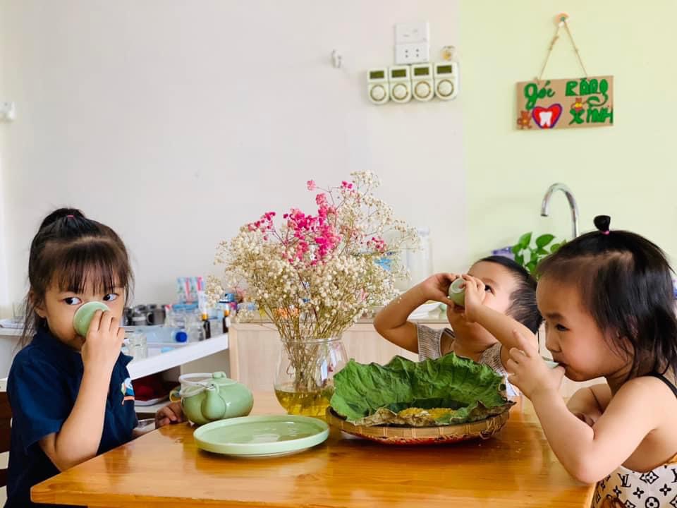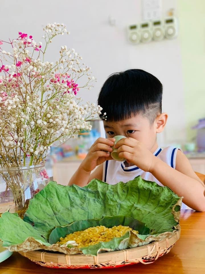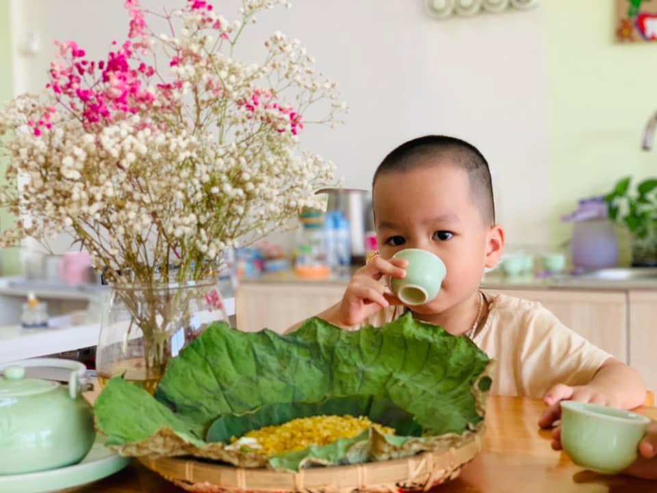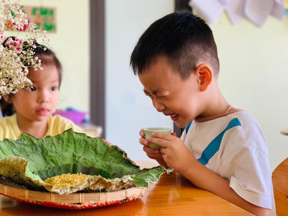Chúng con được thưởng thức hương vị dẻo thơm, ngọt ngào của món cốm xào. Được uống những chén trà thanh ngọt nhè nhẹ. Đó chính là hương vị mùa thu đặc trưng, ấm áp và mộng mơ.🍵