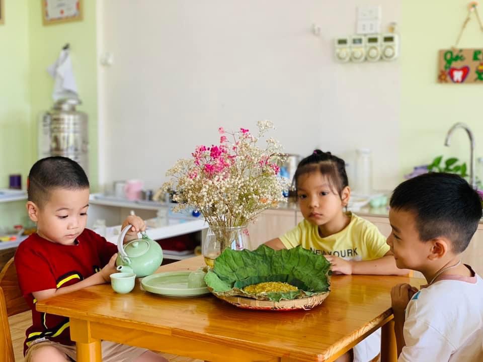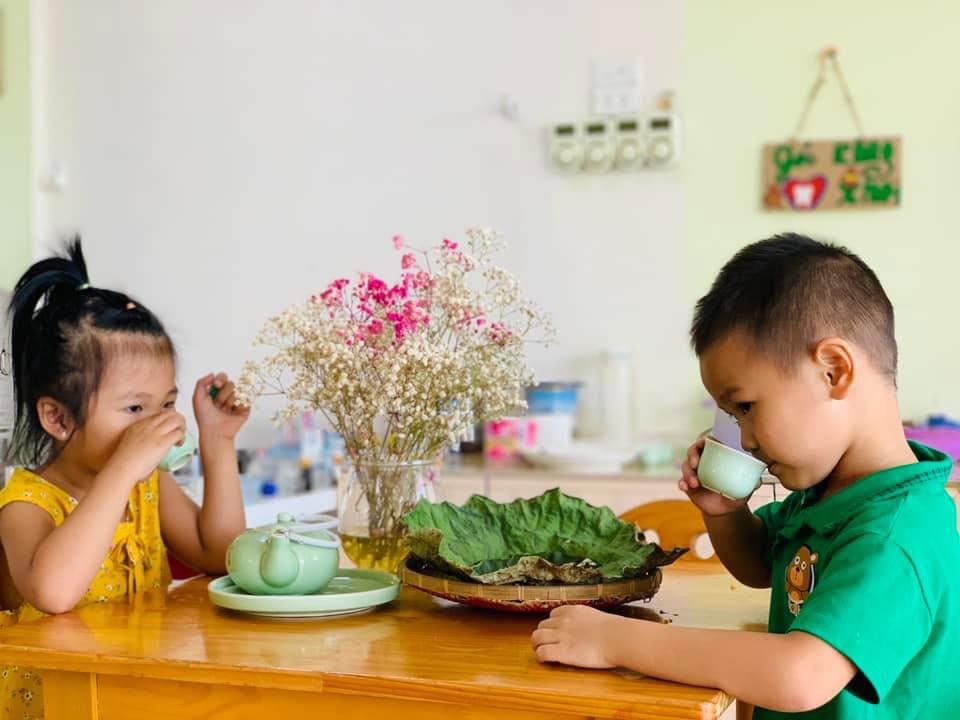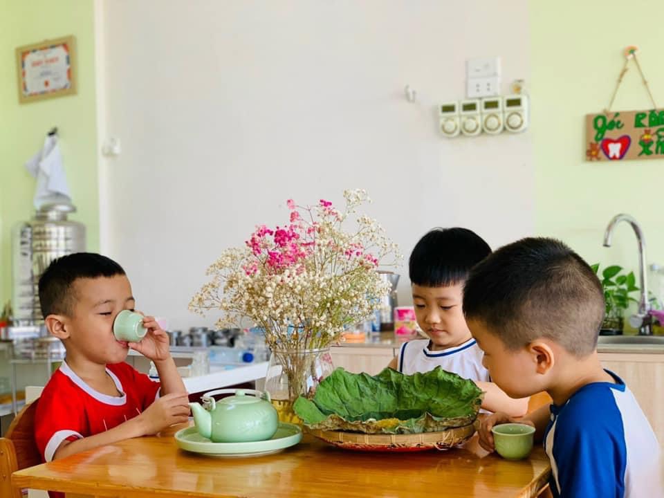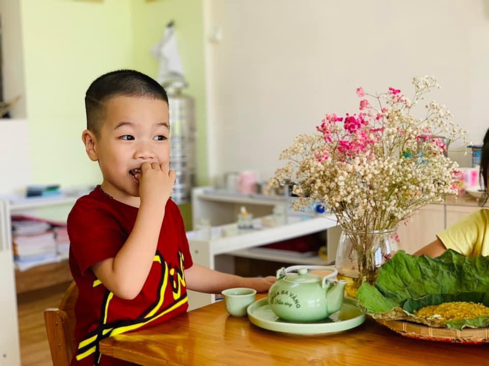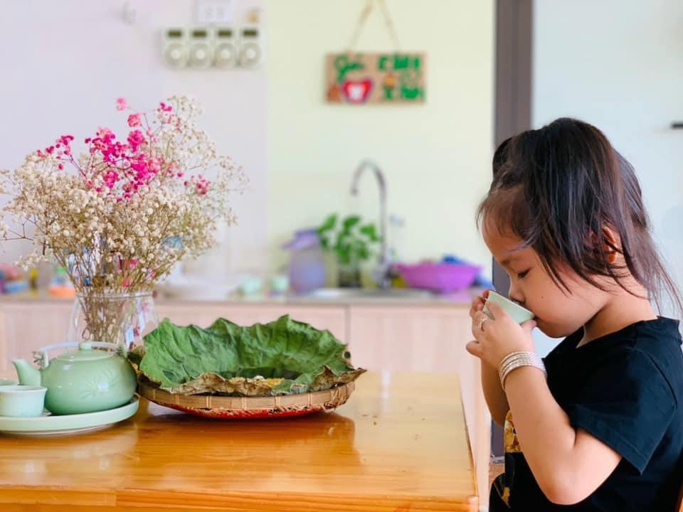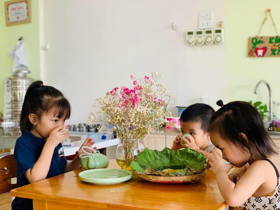 Chúng con được thưởng thức hương vị dẻo thơm, ngọt ngào của món cốm xào. Được uống những chén trà thanh ngọt nhè nhẹ. Đó chính là hương vị mùa thu đặc trưng, ấm áp và mộng mơ.🍵