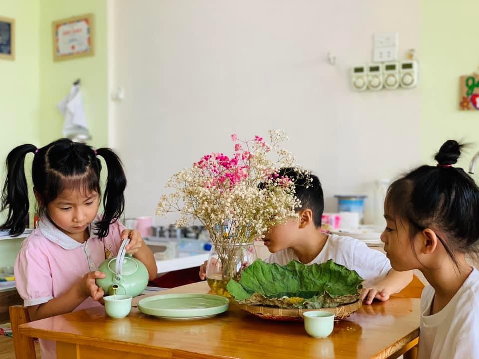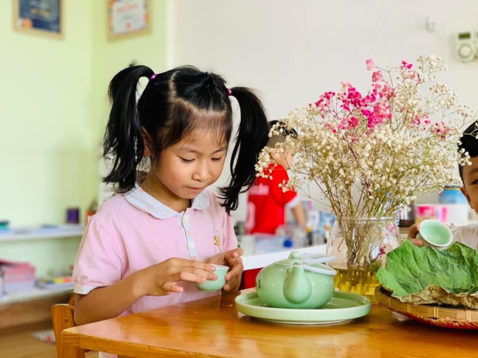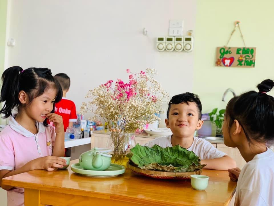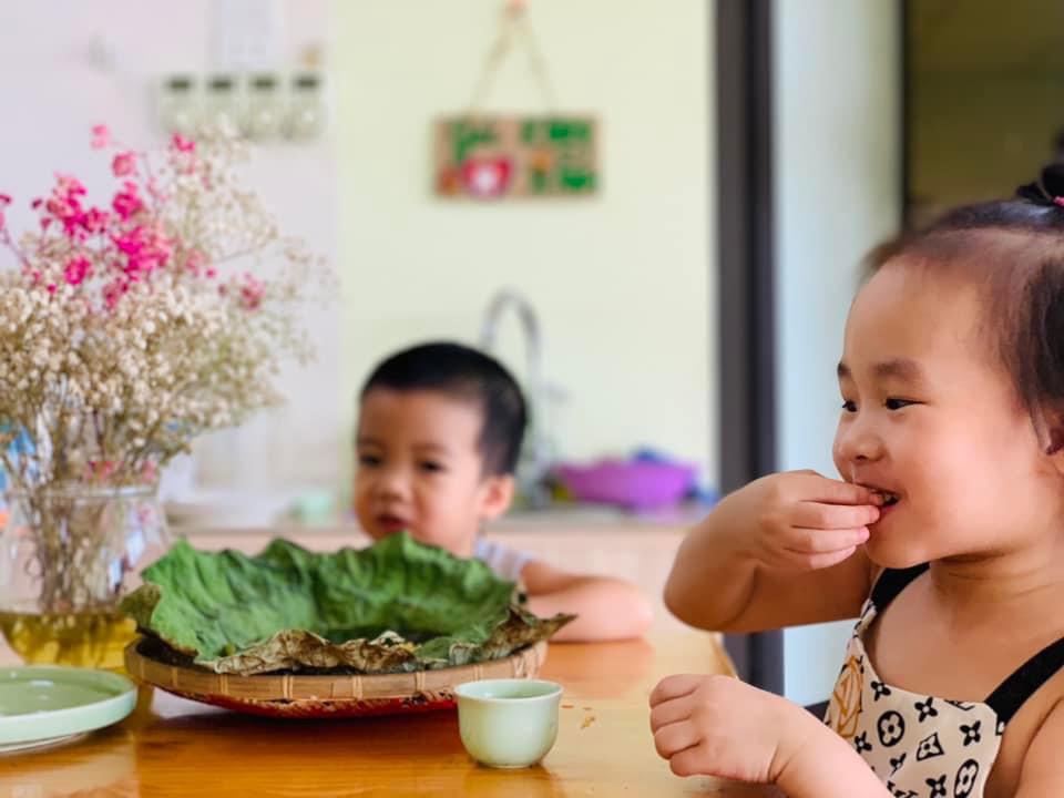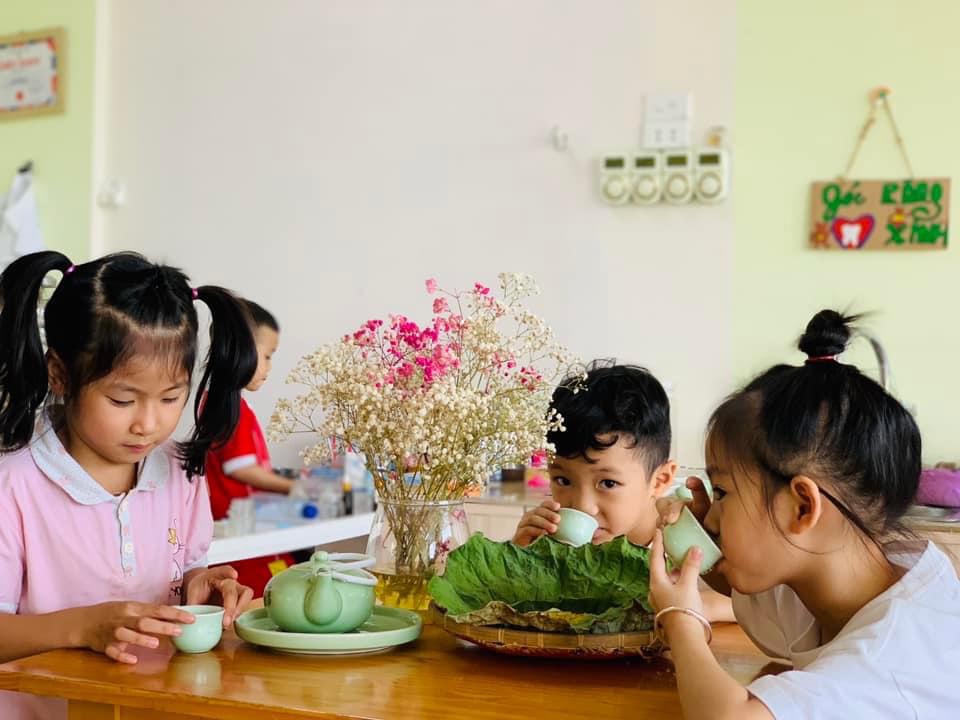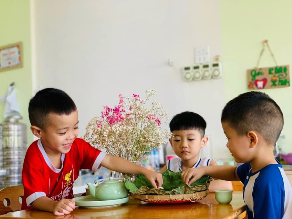 Chúng con được thưởng thức hương vị dẻo thơm, ngọt ngào của món cốm xào. Được uống những chén trà thanh ngọt nhè nhẹ. Đó chính là hương vị mùa thu đặc trưng, ấm áp và mộng mơ.🍵