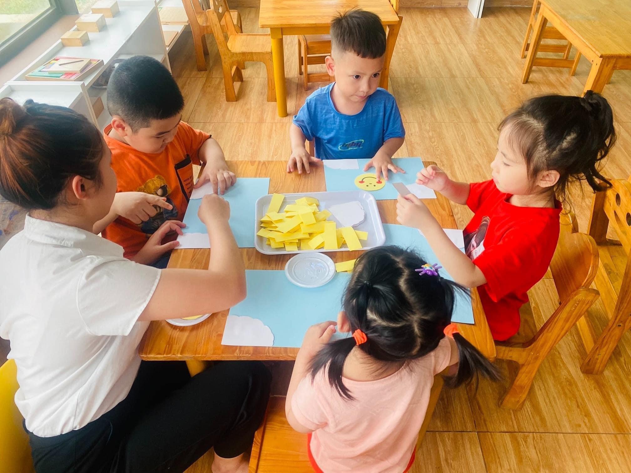 🌞 Và trong hoạt động tạo hình ngày hôm nay, với những vật liệu quen thuộc : giấy màu, hồ dán, các bạn nhỏ lớp Orchid đã tạo nên những bức tranh dán ông mặt trời với thật nhiều màu sắc, những đám mây trong xanh hiền hòa. Qua giờ học các con phát triển được kỹ năng khéo léo của đôi bàn tay và óc sáng tạo. 🌤