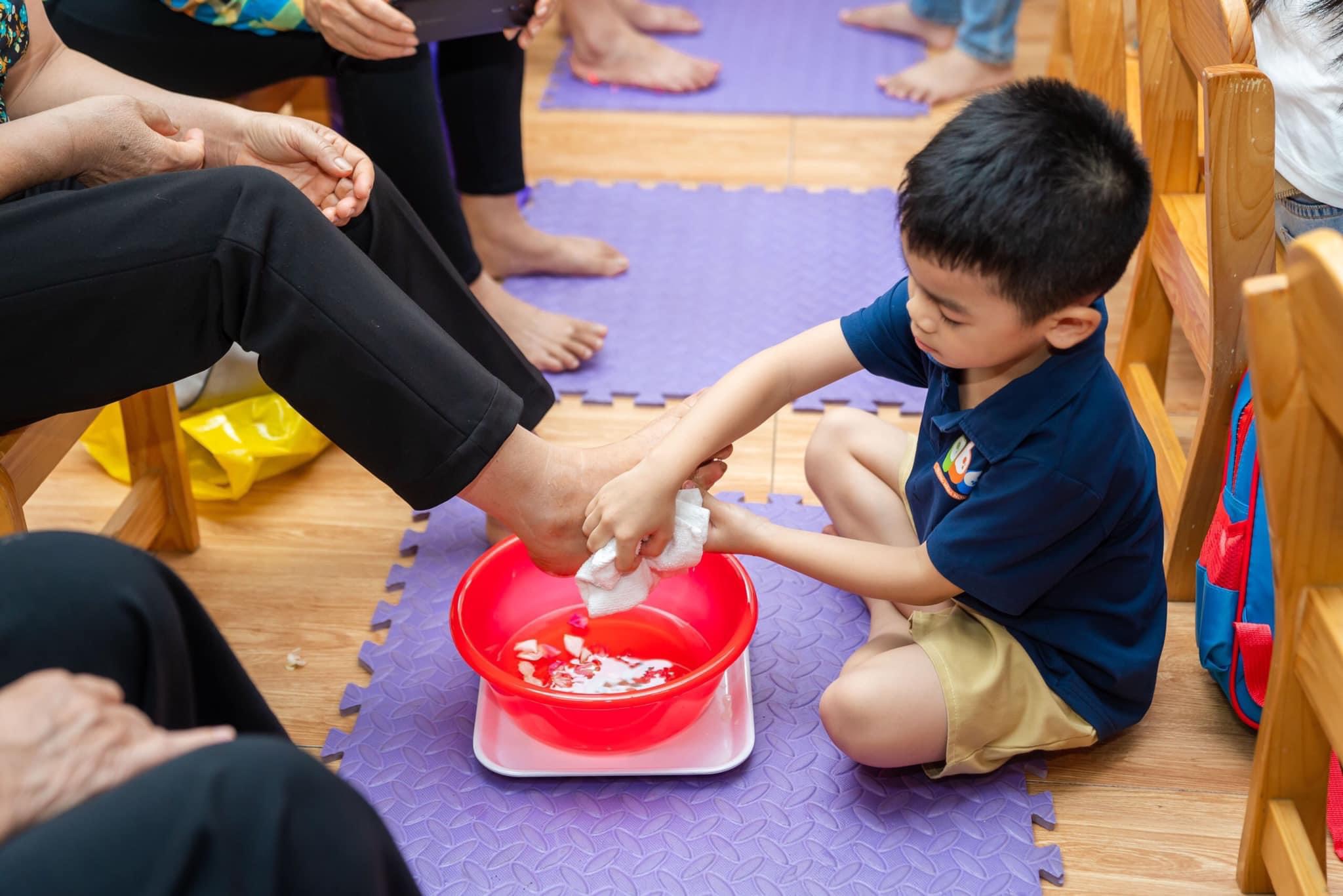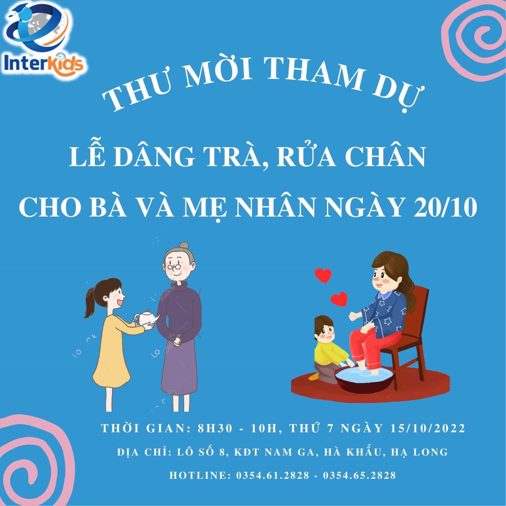 Và không chỉ là những lời nói, Trường mầm non InterKids tổ chức “LỄ DÂNG TRÀ, RỬA CHÂN CHO BÀ CHO MẸ” để các Con, các Cháu có cơ hội để thể hiện tình yêu thương và sự kính trọng với Bà, Mẹ bằng những hành động cụ thể.