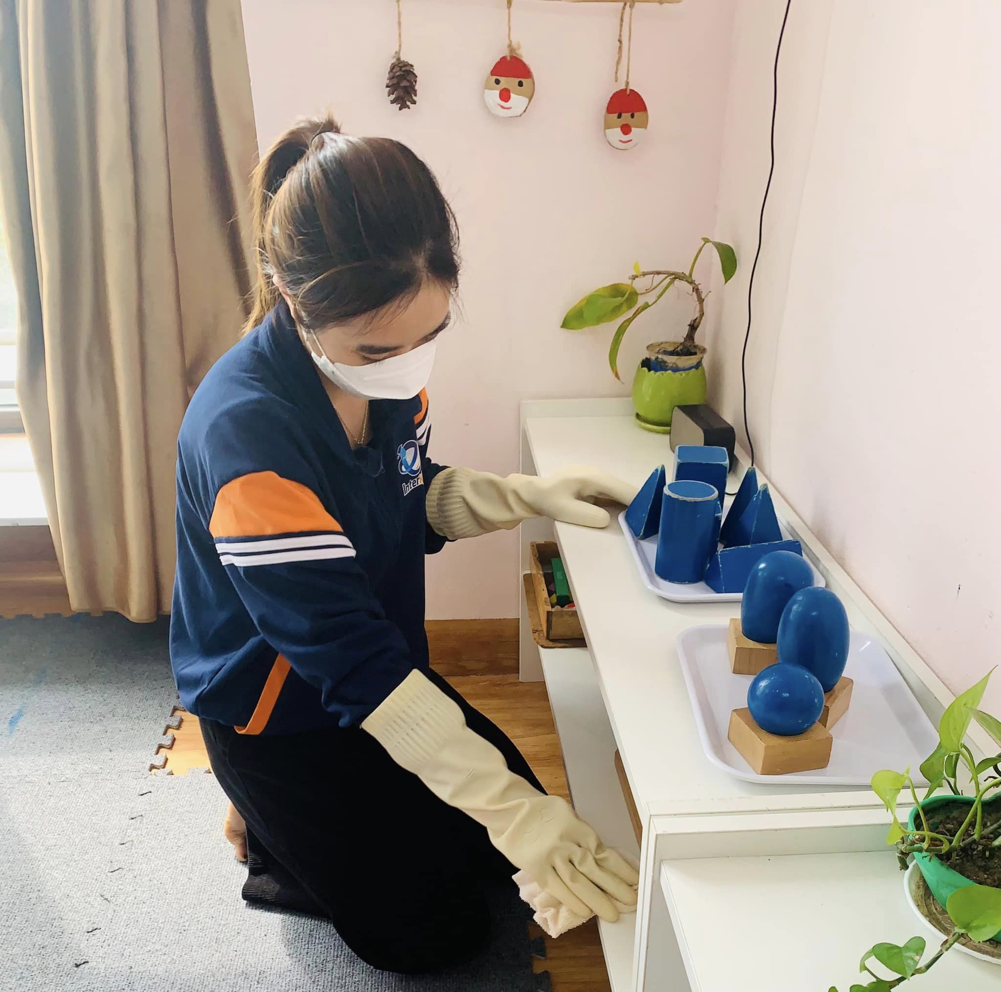 Nhận thức được sự quan trọng trong công tác đảm bảo sức khỏe cho trẻ trong thời điểm giao mùa này, trường mầm non InterKids tuân thủ nghiêm ngặt các nội quy thường nhật cho trẻ như: Rửa tay trước khi vào bữa ăn, sau khi hoạt động, giữ ấm phòng học nhưng vẫn đảm bảo đủ ánh sáng và độ thông thoáng, đảm bảo chế độ dinh dưỡng cho thực đơn hàng tuần, các Con được uống nước hoa quả đều đặn,....... Đặc biệt, Nhà trường đã thực hiện việc khử khuẩn bằng dung dịch sát khuẩn theo tiêu chuẩn để lau dọn và khử khuẩn định kì vào các cuối tuần. ![]()