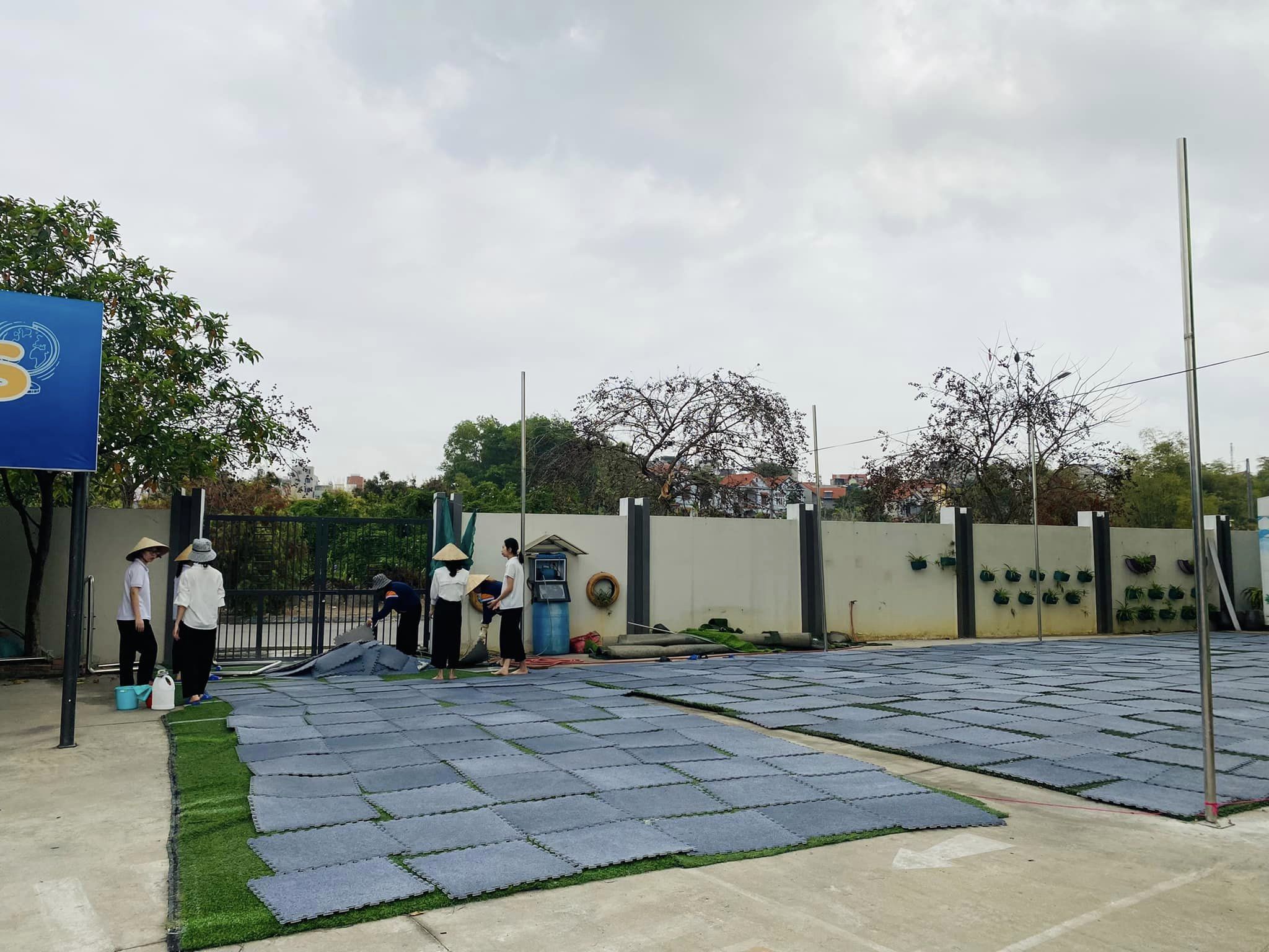 Để đảm bảo cho các con có môi trường học tập sạch sẽ và thoáng mát, thứ 7 hàng tuần các cô sẽ dọn dẹp lớp học, tổng vệ sinh toàn trường. Không chỉ vậy, để các con luôn cảm thấy hứng thú và yêu thích khi đến trường, các cô giáo không ngừng tìm tòi, sáng tạo để thay đổi cảnh quan lớp học, nhà trường với những đồ dùng đồ chơi vô cùng đẹp mắt. ![]()
